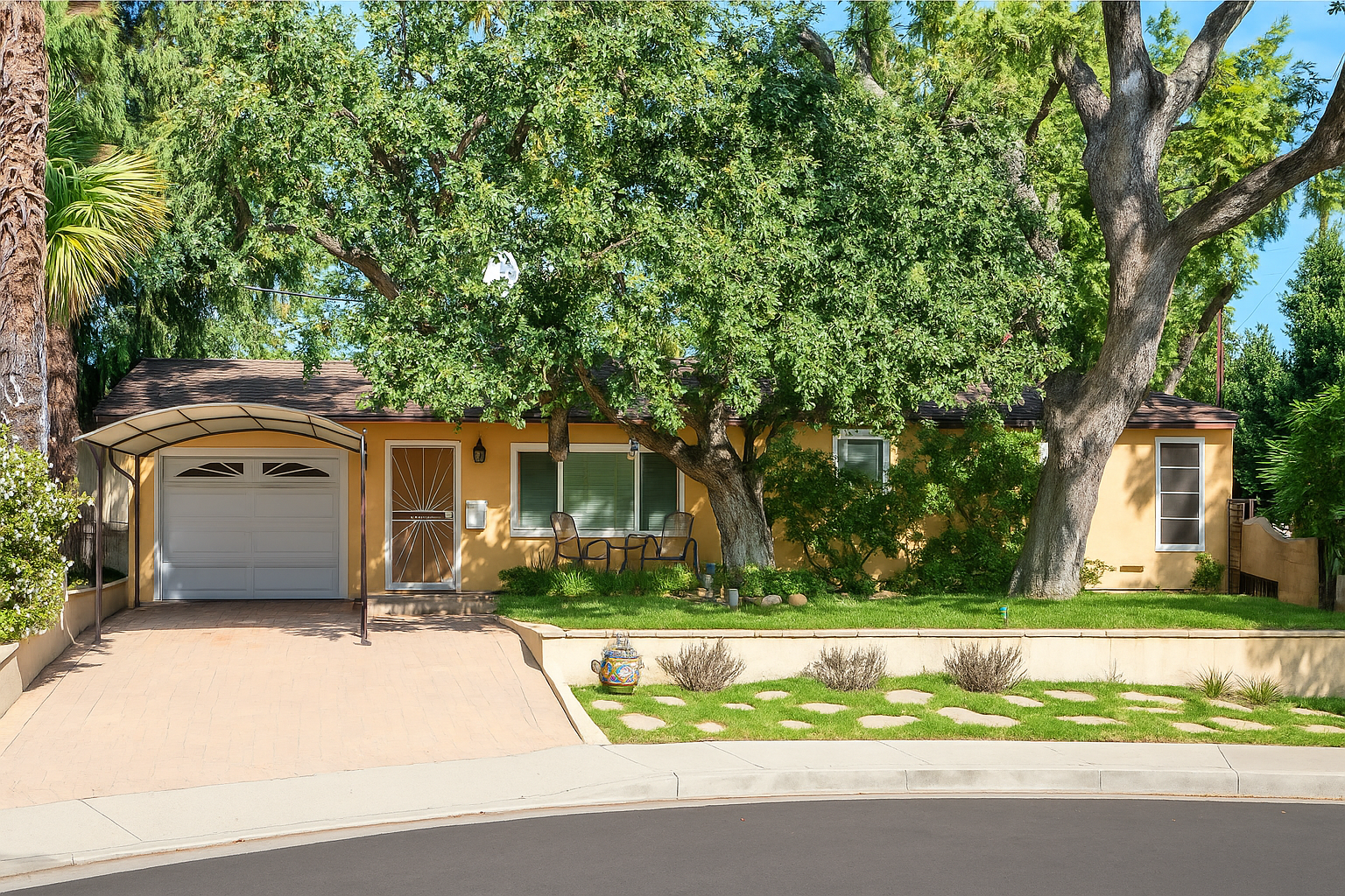 Charming 2 bedroom one full bath 807 sq.ft. home and a one car garage. Not included in the sq.ft. is an attached 650 Sq.Ft Great room, 51 Sq.Ft laundry room, 73 Sq.Ft. Flex room a 721 Sq.Ft. workshop that has been added on by previous owner(s). The square footage to these rooms are approximate and not verified. Buyer to investigate to their satisfaction. This unique property is privately situated on over a quarter of an acre. Offering laminate flooring in living room and bedrooms, kitchen and dining area. The kitchen opens out to the Great room. The interior walls in the Great Room include high beam ceiling and ornamental wooden motif which were constructed with reclaimed wood. There is a Malm imperial carousel style wood burning fireplace. Accessible from the Great room is a separate laundry room and a Flex room which is ideal for an office, library, hobby room or? The Great Room has custom wood and glass accordion doors that open outdoors to a large deck which over looks a private and lushly landscaped backyard which is a beautiful garden oasis complete with mature avocado tree, fig tree, spacious lawn and brick walkways. The deck off the Great Room wraps around to a large enclosed workshop ideal for the hobbyist to use for a myriad of projects. Tucked away on a less traveled cul-de-sac in the desirable Eastview area in RPV where there is an option for children to attend the Palos Verdes School district or LAUSD. Centrally located and close to shops, restaurants, Trader Joe’s, movie theater, banks, gas stations and minutes away from the 110 freeway.